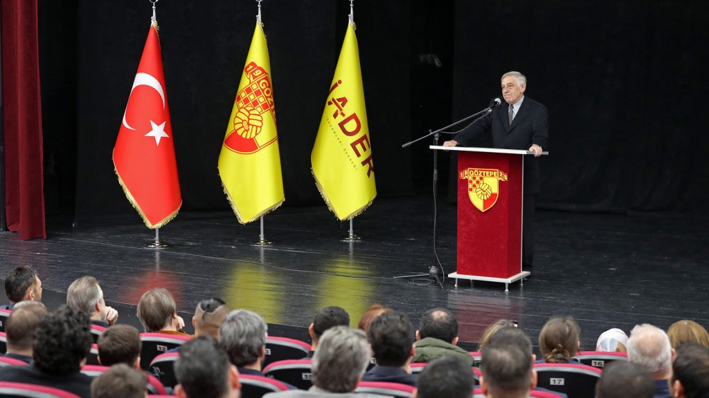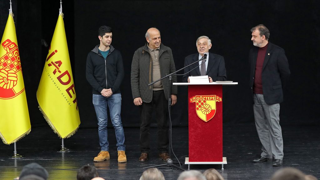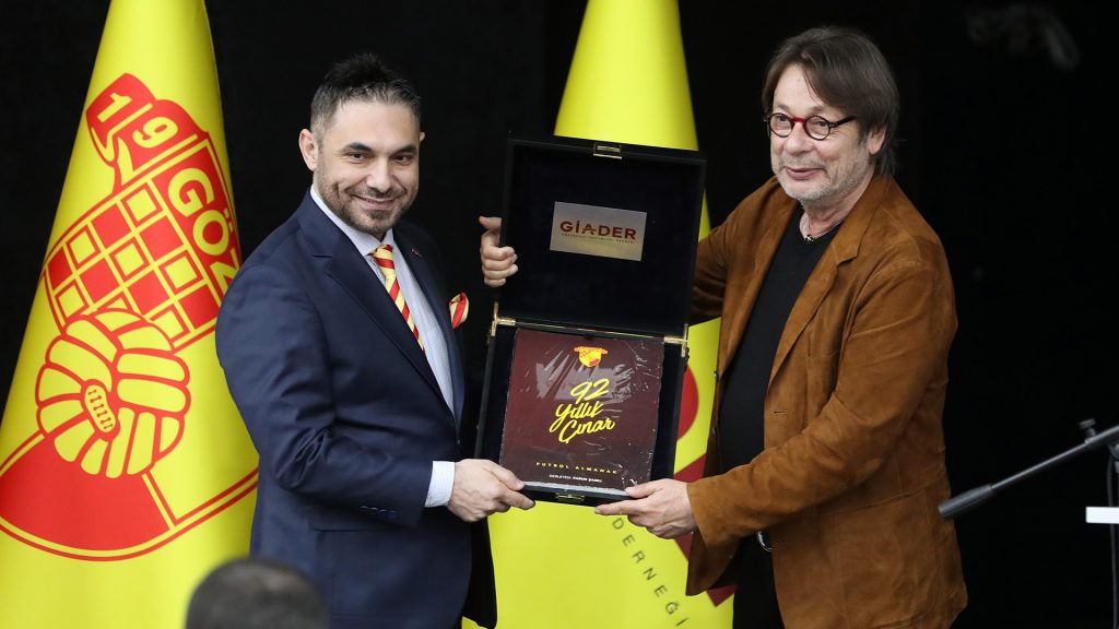 Göztepeli İşadamları Derneği Yönetim Kurulu Başkanı Murat Kurtuluş Buyrukçu, davetliler arasında bulunan Göztepe Başkanı Sepil, Göztepe Başkan Vekili Papatya, Yönetim Kurulu Üyesi Can Kestelli, Vakıflar Bölge Müdürü, efsane oyuncular, meclis üyeleri, taraftar derneklerinin üyeleri ve Göztepe tribünün değerli emekçilerine teşekkürlerini ileterek konuşmasına başladı. Buyrukçu; “Kurucu Yönetim Kurulu üyemiz Nazmi Felibeli’den almanak projesini duyduğumuzda çok heyecanlandık. Yönetim kurulumuz ile bu projeyi hayata geçirmemiz gerektiğini düşündük. Kulübümüzle yaptığımız görüşmelerde böyle bir projede yardımcı olma fırsatını edindik, kurulduğumuz ilk günden bu yana bize verdiği desteklerinden dolayı Sayın Mehmet Sepil’e teşekkür ederim” dedi. “Yeni bir tarih yazmalı” sloganı ile konuşmasını sürdüren Buyrukçu; “Göztepemizin Sayın Başkanımız Mehmet Sepil ve değerli yönetimi ile geldiği nokta ortadır. Torbalı’daki akademimiz, semtimizdeki stadımız, gelecek hedeflerimiz için hepimizi heyecanlandırmaktadır. Yeni bir tarihin yazılmasında öncü olunacak bir dönemde olduğumuzu düşünüyoruz ve tüm desteğimizle başkanımızın yanında olmaya devam edeceğiz” dedi. 92 Yıllık Çınar’da emeği geçen herkese teşekkür ederek sözlerini tamamlayan Murat Kurtuluş Buyrukçu, Mehmet Sepil’i kürsüye davet ederek 92 Yıllık Çınar Göztepe Futbol Almanak kitabını hazırlanan özel muhafaza kutusunda kendisine hediye etti.